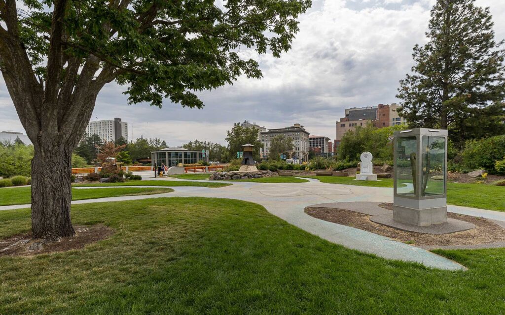 The Sister Cities Connections Garden is a space to honor and celebrate the importance of our Sister Cities through nature and art. It’s placed at the site of the former Japanese Pavilion at the Expo ’74 World’s Fair. The garden has blue-green curbed pathways, symbolizing connections of each of the rivers of our Sister Cities to the oceans of the world.
